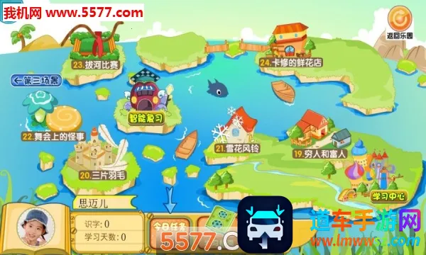 3. 丰富学习场景:专为3至10岁儿童设计,有四大主场景,24个经典儿童故事为学习背景,360个与儿童故事情节相关的识字游戏。