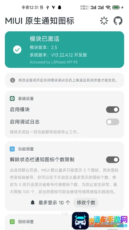 MIUI原生通知图标安卓版是针对MIUI系统的Xposed模块,可修复被MIUI开发组丢弃的原生通知图标,支持MIUI11及以上系统(最低Android9),有图标调整优化等功能,玩法丰富,还不断更新修复问题。
