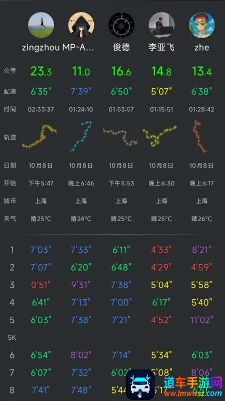 4. 数据对比:跑步结束自动展示好友跑步数据,方便通过软件进行数据对比。