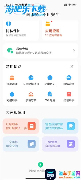 小米管家2026官方最新版本优势显著。它**内置针对热门应用的缓存专清功能**,可高效扫描删除QQ、微信等的无用缓存与图片。运行游戏时能自动开启游戏模式,带来系统级性能优化,畅玩游戏更畅快。安全防护全新升级,支持开启纯净模式,遇木马病毒软件会自动删除,全方位保障手机安全与流畅使用,让用户拥有更优质的手机管理体验。