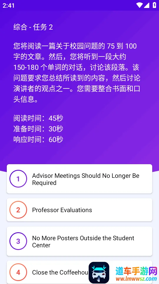 这款软件专为考托福的朋友打造,进入就能免费使用所有功能,还有针对不同考试的专业题型,能助力提分。软件使用方便,下载安装后,选择考试时间,进入软件选任务练习,有中文界面按提示操作,点开文章需获取录音权限,还有倒计时。更改语言也简单,打开软件左上角三横进入设置,选翻译按钮,在语音中选简体中文即可。它紧跟托福口语考试变化,2026 年 1 月 21 日后题型和结构全面更新,全新 2026 版题型运行更快,还修复了小问题,能提升备考水平,是考托福口语的得力助手。