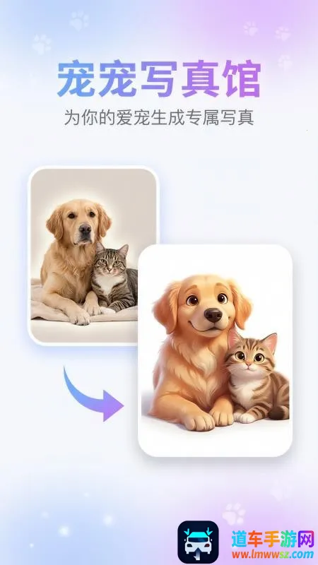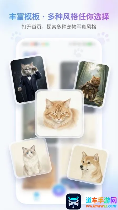 宠宠写真馆是一款专为爱宠打造个性写真的软件。上传照片可一键生成多种风格精美画像,有丰富主题模版,支持生成宠物小情绪表情,能保存分享,操作简单,还不断上新,助您记录爱宠精彩瞬间。
