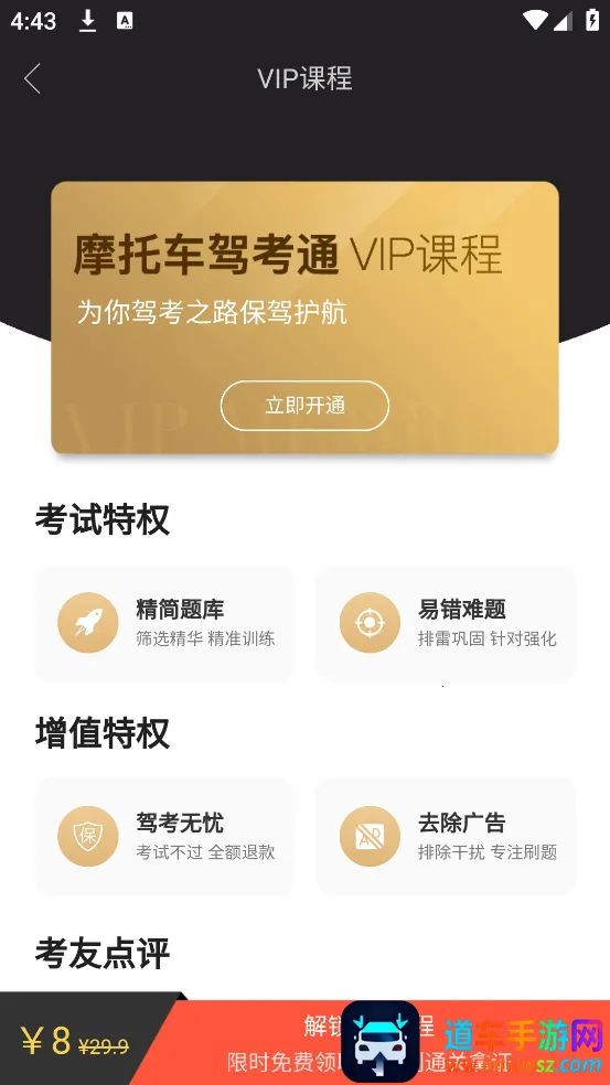 摩托车驾考通是一款专门为考摩托车打造的学习驾驶软件。它覆盖了科一科四的摩托车题库刷题,能帮助快速提高驾驶考试通过率。用户还能在软件中学习各种摩托车行驶知识,让驾考更顺畅。软件有会员课程可免费观看,有最新题库,所有摩托车驾驶员都能学到更多知识。它专注于摩托车驾照考试领域,提供全面专业的备考资源和服务。题库和资讯实时更新,能确保用户获取最新考试信息和资源。同时提供错题本和收藏夹功能,帮助用户巩固学习成果并查漏补缺。通过多种做题模式和视频教学相结合的方式,帮助用户快速掌握考试要点和技巧。对于准备考摩托车驾驶证的人来说,是个不错的选择。