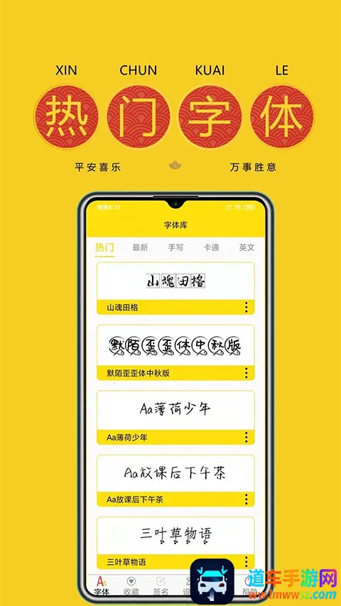 你想知道字体有多少种吗?那就来试试字体多多APP吧!它为你提供数千款新颖字体,卡通、炫酷、书法、手写等应有尽有。软件使用超简单,每款字体都精心筛选制作。有了它,能轻松找到专属字体,广泛用于横幅标语、美术设计、宣传海报、ppt、影视制作等领域,让你体会绝妙字体新玩法。软件亮点多多,有专题推荐,集合时下流行字体资源;能留下个性笔迹;字体操作功能丰富,可下载、分享、发送、使用;还有明星字体,是追星达人聚集地;每周都有精选新品。软件特色是有各种精美字体任你选,设计标语和海报时能切换适合场景的字体,使用流畅,多种艺术字体带来更多选择。快来下载,畅享字体世界的奇妙吧!