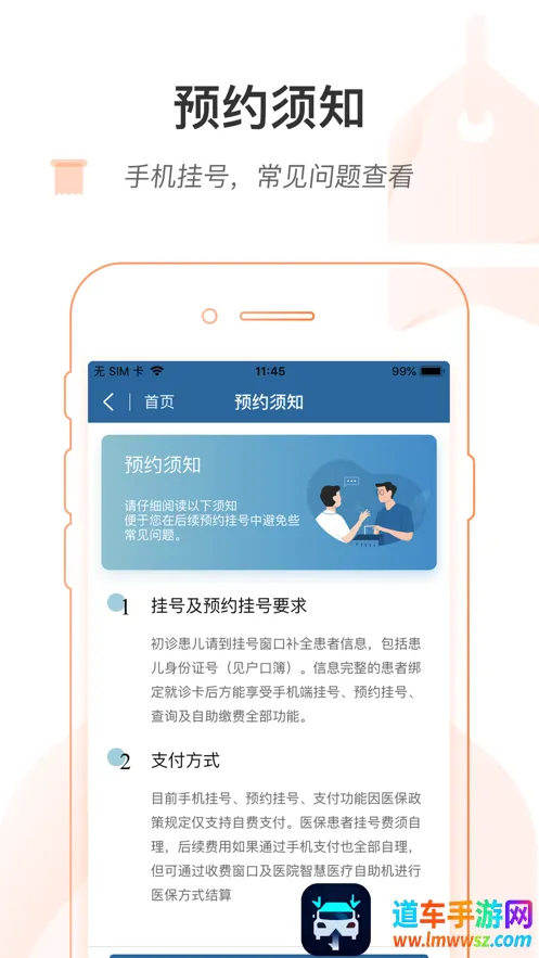 3. 预约须知手机挂号:常见问题查看,让挂号等操作更清晰明了,便于用户顺利就医。
