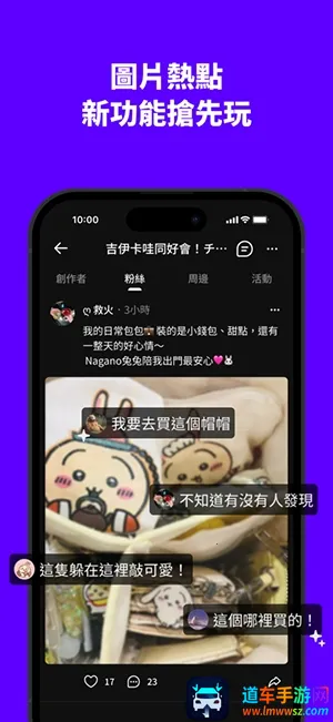4. 便捷社群交流:可追踪创作者与同好,建立专属互动圈,群聊互动功能方便实时讨论,一键分享内容促进粉丝间共鸣。