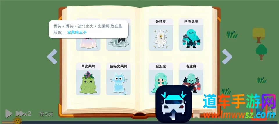 5、点击右下角的书本标识,可以查看不同史莱姆进化所需的卡片。