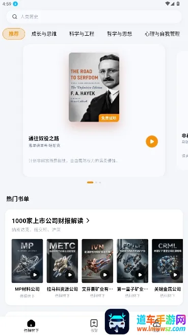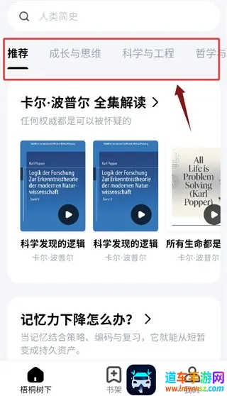 2、在首页的栏目提供了推荐、成长思维与科学工程等分类;