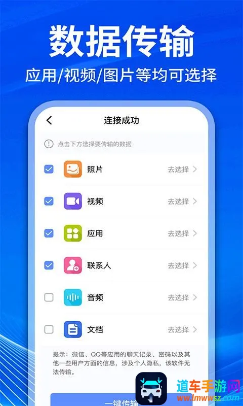 它亮点也不少。智能筛选,勾选想转移的数据轻松搞定。界面简洁无广告,还有引导步骤,几分钟就能完成数据转移。安全管理强,数据本地加密传输,避免隐私泄露。