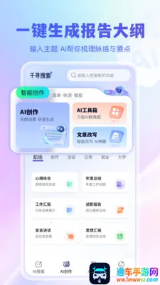 千寻搜索是一款智能搜索软件,提供一站式搜索服务。能快速获取各方面信息,自带AI创作等功能。可辅助内容创作、梳理文章,有超多创意模板。一键整合全网信息,与AI智能聊天,不同领域知识均可查找。