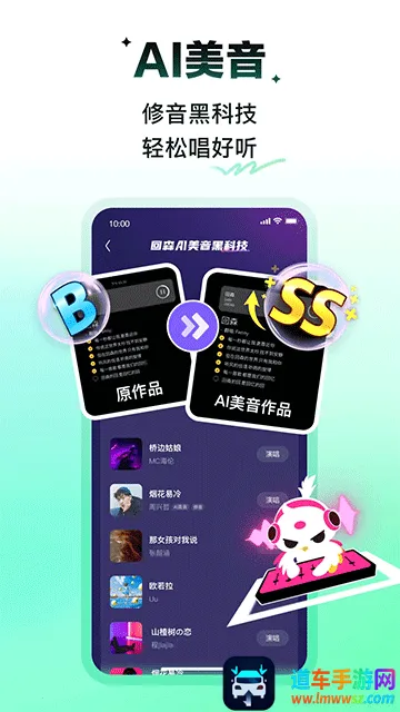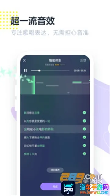 舒适K歌体验:专研实验室级别K歌音效,智能升降调、一键修音,还有超新潮音乐视频模版、特效配图,唱歌烦恼全搞定。