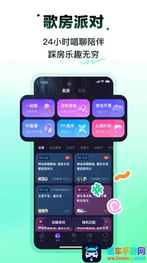 歌房全天陪伴:嗨唱或畅聊,抢唱、点唱、PK、自由麦等功能都有。这里是24小时不打烊的陪伴空间,随时满足你的K歌需求。