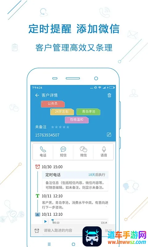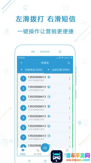 电销宝是一款超棒的电话销售办公软件,专为电销人员打造。它功能强大,能帮你轻松解决不少工作难题。智能拨号一键搞定,支持自动拨号和挂机检测,大大提高通话效率。通话自动录音存档,保障通话质量和客户信息安全。任务管理可创建与分配任务,跟踪进度,事项不再遗漏。还能实时统计销售数据,直观展示业绩趋势。团队成员能信息共享,协同完成销售目标。有智能回访设置回访闹铃,客户一个不漏。智能备注能把客户情况记清楚。业界交流可让你分享行业经验。拨打统计让你清楚了解自己工作情况。多种导入方式轻松录入数据,数据优化能筛无效数据。有了电销宝,电销工作更高效、有条理,赶紧来试试吧!