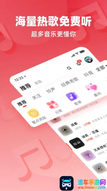 如果你想免费听歌,快音音乐app是个不错的选择。它有海量曲库,经典老歌、DJ热歌、广场舞等各类歌曲应有尽有,能满足你不同的音乐口味。这里每天还会推荐热门歌曲,让你随时跟上潮流。它的优势也很突出,比如可以一键音视频分离,剪辑音频、去除水印,想听的热歌随时设为铃声。软件内有精细的铃声分类,从欧美日韩到古风,从影视热曲到动漫游戏,各种类型都有。而且它不怎么占内存,还能让你随时随地搜索和下载歌曲,建立自己的歌单,告别频繁切歌的烦恼。同时,你还能通过评论区和其他音乐爱好者互动。另外,它还有很多有趣的功能,像歌词同步显示、提供大量主题皮肤、内置闹钟等。不仅如此,在这听歌还能领奖励,分享音乐能找到志同道合的朋友,真的很方便!