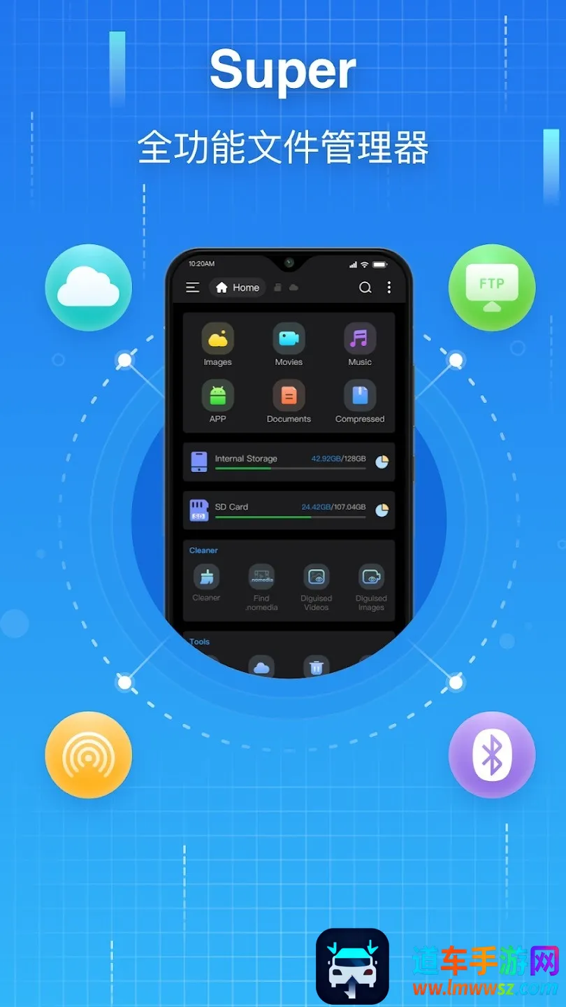 Super文件管理器可查看手机内部存储、SD卡及USB OTG设备文件,能清理大文件和重复文件,自动归类图片等。支持云盘直连、批量操作、压缩解压,还有应用管理工具,操作简单,新手易上手。