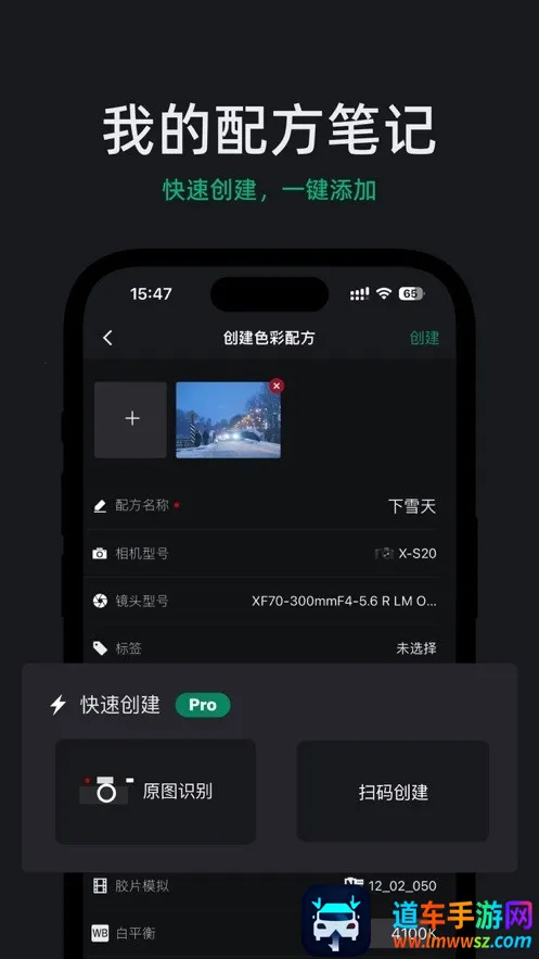 2. 智能识别笔记:可智能识别照片内容,自动生成拍摄配方笔记,并提供云存储,方便随时查看管理。