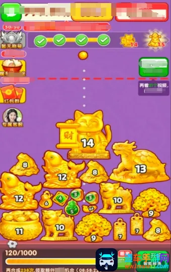 黄金满满是休闲益智游戏,通过合成消除玩法获红包奖励。有丰富多样的黄金珠宝元素,关卡多且不断更新,采用卡通画风,道具可免费使用,还有图鉴功能和互动性,适合碎片时间玩。