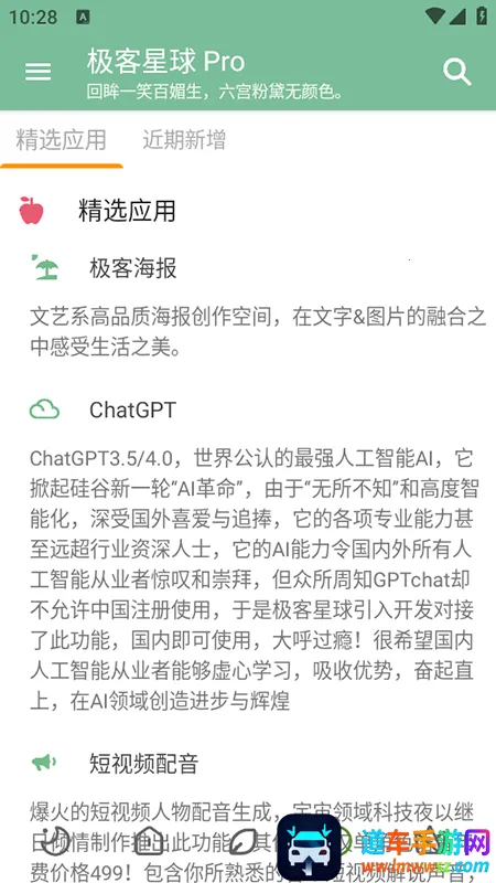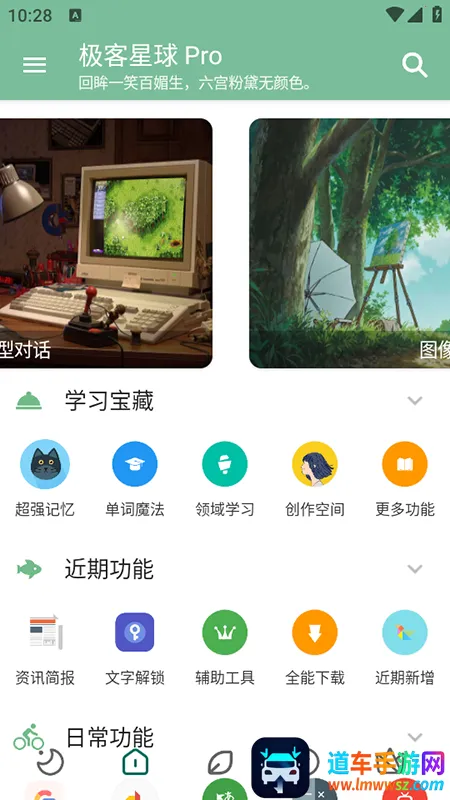 极客星球 Pro 是一款超实用的工具软件,涵盖多种实用工具,能应用于生活、学习、工作等各领域,为你带来诸多便利。它对每个工具都进行了细致分类与介绍,像 Ai 图片增强、音乐搜索、单词翻译等,类型超多。在这平台,能获取实时更新的资讯内容。其亮点也不少,会详细记录使用信息,方便下次用;采用先进 ai 技术自动识别文字,应用场景广泛;所有资源严格筛选,无不良内容。特色更是突出,相比其他平台收费工具,这里全部免费使用,使用无限制,能享受优质服务。还能满足不同人群需求,可用搜索栏查找。总之,放心用,不用担心费用,平台精心筛选内容,工具分类后查找轻松,能帮你高效快捷完成各种设置。
