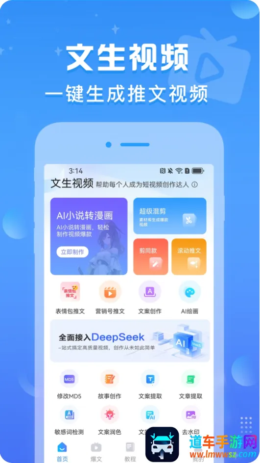 文生视频是手机视频创作软件,剪辑融入deepseek大模型,有丰富模板。导入视频可自动剪辑,支持文字转视频,无水印,有教学,支持音频导入。使用需授权限,联网调用模型,可存创作记录,会员无次数限。