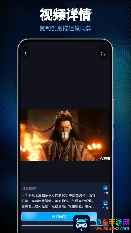2. 具备文生视频能力,输入详细的文字创意描述可一键生成对应视频内容,降低视频创作的技术门槛。