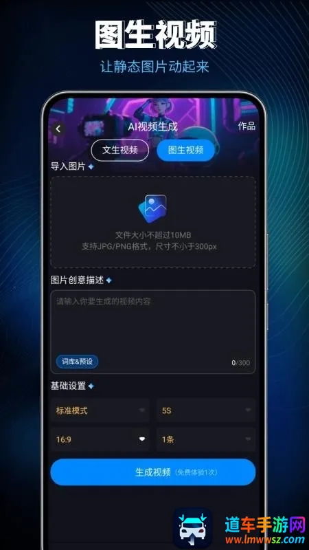 1. 支持图生视频功能,导入静态图片即可快速转换为动态视频,让图片动起来,实现创意视觉表达。
