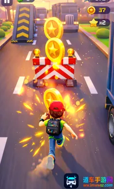 3. 多样收集要素:可收集金币提升分数,还有隐藏在墙壁和危险路线上的碎片,以及磁铁等道具,最大化奖励。
