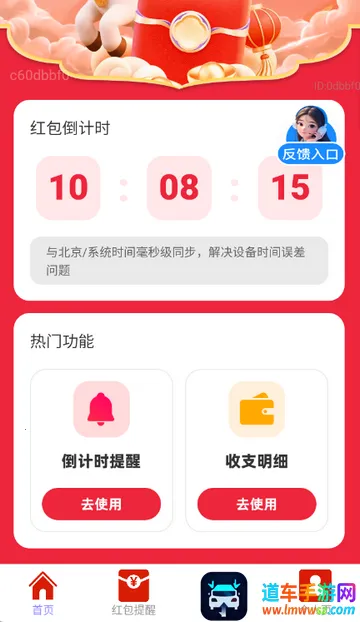 2、进入软件首页,可设置红包倒计时等