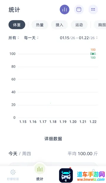 3、进入柠檬轻语首页,可记录每日体重,热量,状态等