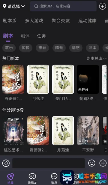 2、进入软件组局页面,查看最近热门剧本杀等