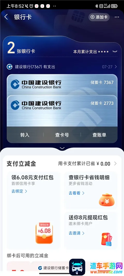 3、来到银行卡界面,然后再点击想要解绑的“银行卡”图片。
