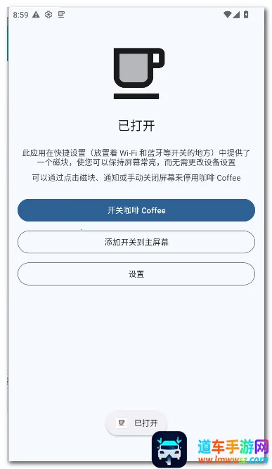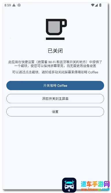 咖啡Coffee是安卓应用,能让屏幕常亮,无需改设备设置。可在快速设置板块、应用内按钮切换功能,需Android7或更高版本。还能设为辅助应用,可能因电池保护模式故障,可启用备用模式。