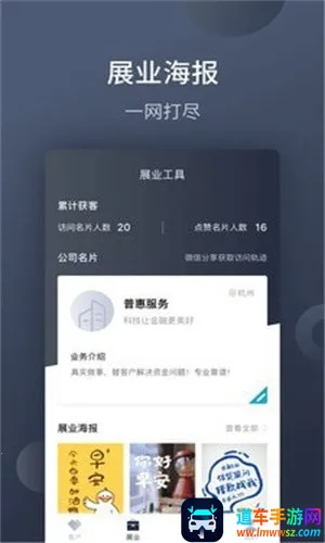 展业引擎安卓版优势显著。它能让用户通过线上展业,精准满足客户所需。**可线上编辑展业海报**,极大便利了推广与转发,提升信贷服务效率。其拥有一系列展业模块,像公司名片、展业海报、业务介绍等,为展业提供全方位支持。借助该平台,客户经理能轻松获客、管理客户,按筛选条件匹配合适客户,线上跟进客户需求,有效提高办公效率与客源流量,是客户经理展业的得力助手。