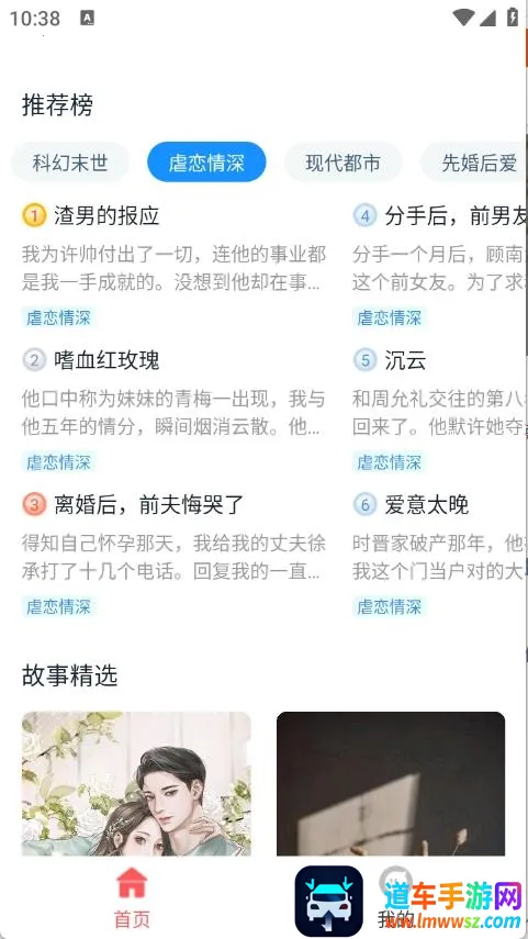 2、首页顶部栏中有很多的小说类型,包含了科幻末世、悬疑以及都市等类型。