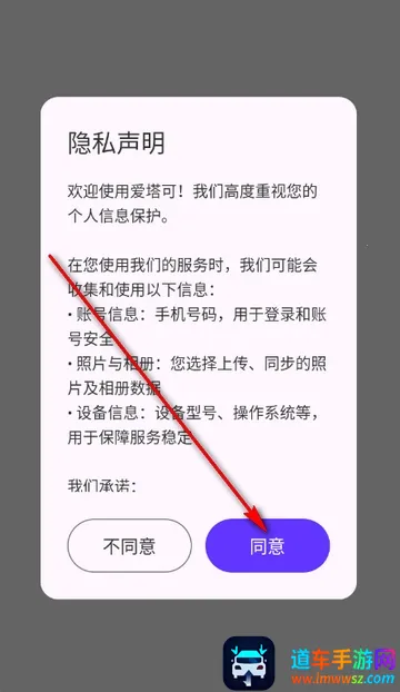 1、打开爱塔可app,点击同意隐私政策