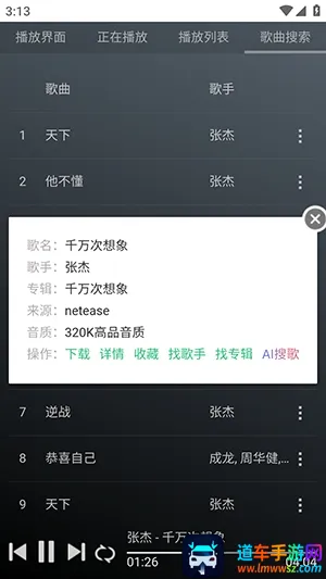 2. 精准搜索技术:搭载超强多引擎精准搜索技术,能快速抓取全网各类音乐资源,轻松找到想听的歌。