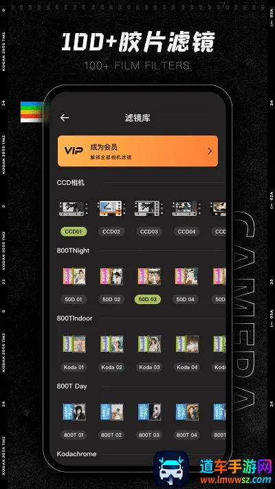 CCD质感胶片相机是复古摄影APP,有逼真胶片摄影效果,原片直出。含多种滤镜,可参数设置,还有预览效果。能导入图片加滤镜,有姿势库、时间戳,支持拼图,带来便利,还原真实拍摄体验。