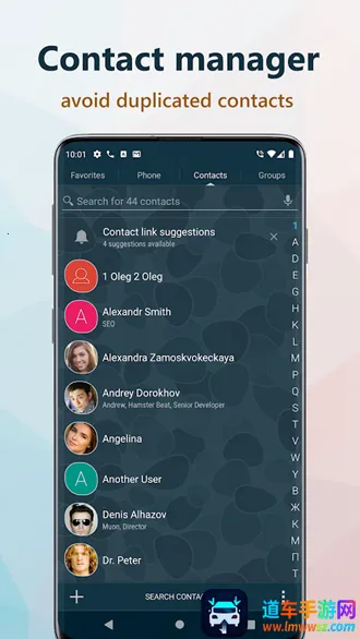 3. 一体化联系人管理中心功能强大,所有联系人集中呈现统一编辑,有智能建议系统,支持一键导入导出,可自由创建编辑分组及收藏夹。
