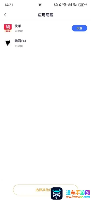 4、再一次点击隐藏应用即可发现已经添加在其中,点击设置;