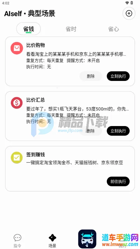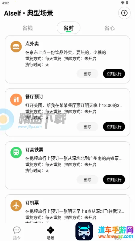 3、在场景页面,为大家提供了一些比较常见的点外卖、订餐、订票等场景,可以直接点击立即执行
