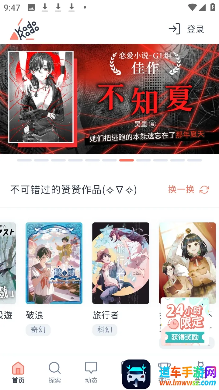 KadoKado角角者优势显著。它主打轻小说与华文原创,汇聚大量日本正版授权轻小说,不管是恋爱言情、奇幻玄幻,还是犯罪悬疑、恐怖惊悚等各类题材,都能满足你的阅读喜好,让你尽享阅读乐趣。拥有免下载即读功能,能即刻阅读众多作品。分类找小说方便快捷,结合大众化标签与丰富分类查找功能,可轻松找到各式竞赛作品、读角券作品及经典日本轻小说。热门排行榜涵盖浏览榜、收藏榜、畅销榜等,助你掌握小说世界脉搏。还有热情送礼活动,支持你喜爱的小说创作者。如此出色的小说阅读软件,不容错过。