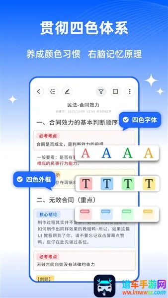 1. 四色标注:所有笔记内容仅设置四色字体与四色外框,帮你养成颜色习惯,能清楚标记重要紧急事件,便于轻松管理笔记。