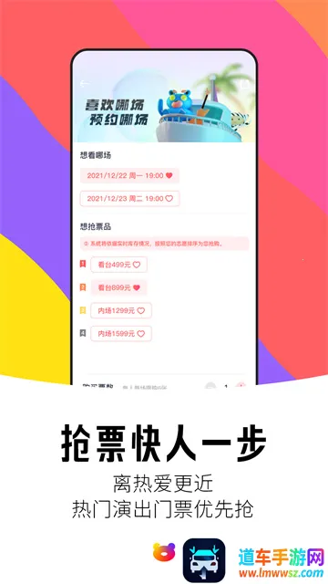 独家优先购:纷玩岛购票 app 为用户提供独家优先购服务,让用户先人一步感受 LIVE 现场的至上快乐。