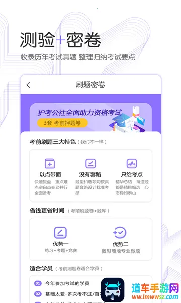 **特色课程助力**:有海量真题,助考生从量变到质变;精心设计,涵盖所有护理试题;名师直播精讲,在线互动解读考点难点。总之,护考公社是备考护理考试的得力助手,能让考生更轻松地备考,增加通过考试的几率。