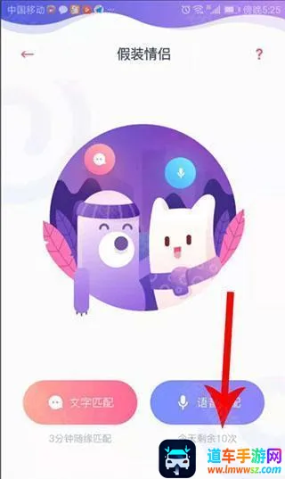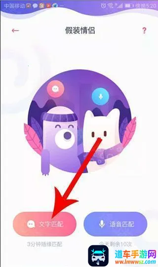 2、进入到"假装情侣"界面,点击"文字匹配"按钮。