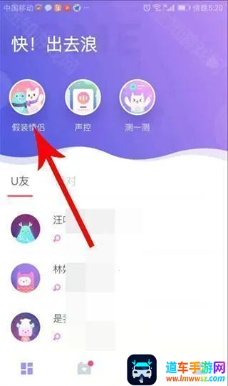 1、来到uki app主页面后,点击左上角的"假装情侣"。