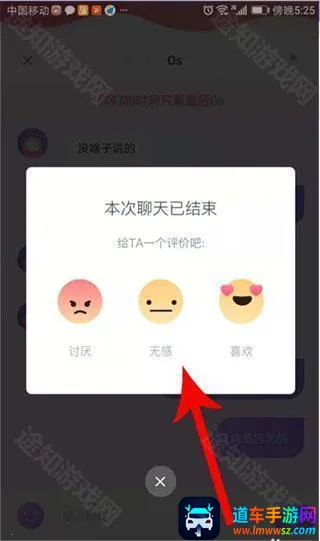 5、倒计时结束后,你与对方的对话窗口便会关闭,打开评价弹窗,点击列出的选项即可。
