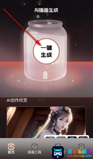 2、进入软件首页,可一键生成AI最新插画等