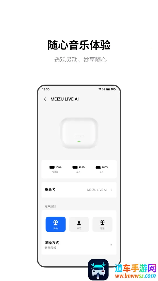 魅族耳机相关软件是一款功能丰富且实用的智能穿戴管理软件。它能在多种场景下将耳机功能发挥到最佳状态。连接稳定,能快速适配魅族耳机。可实时监测耳机电量,让你随时掌握剩余电量情况。支持自定义触控手势,满足不同用户操作习惯。拥有智能音效调节,基于 AI 算法提供个性化音质体验。还具备多场景模式切换,像环境音、游戏低延迟、降噪等模式,适配各种使用需求。双设备无缝连接功能也很出色,能同时连接两台设备并一键切换音频输出源。固件 OTA 升级方便快捷,持续解锁新功能、优化性能。此外,它还有耳机定位查找、佩戴检测与提醒等贴心功能,是管理魅族耳机的得力助手。
