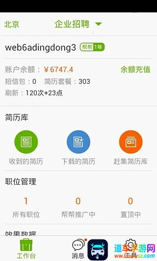 2. 招聘身份的客户可在底部轻松切换职位贴和简历管理,操作方便快捷。