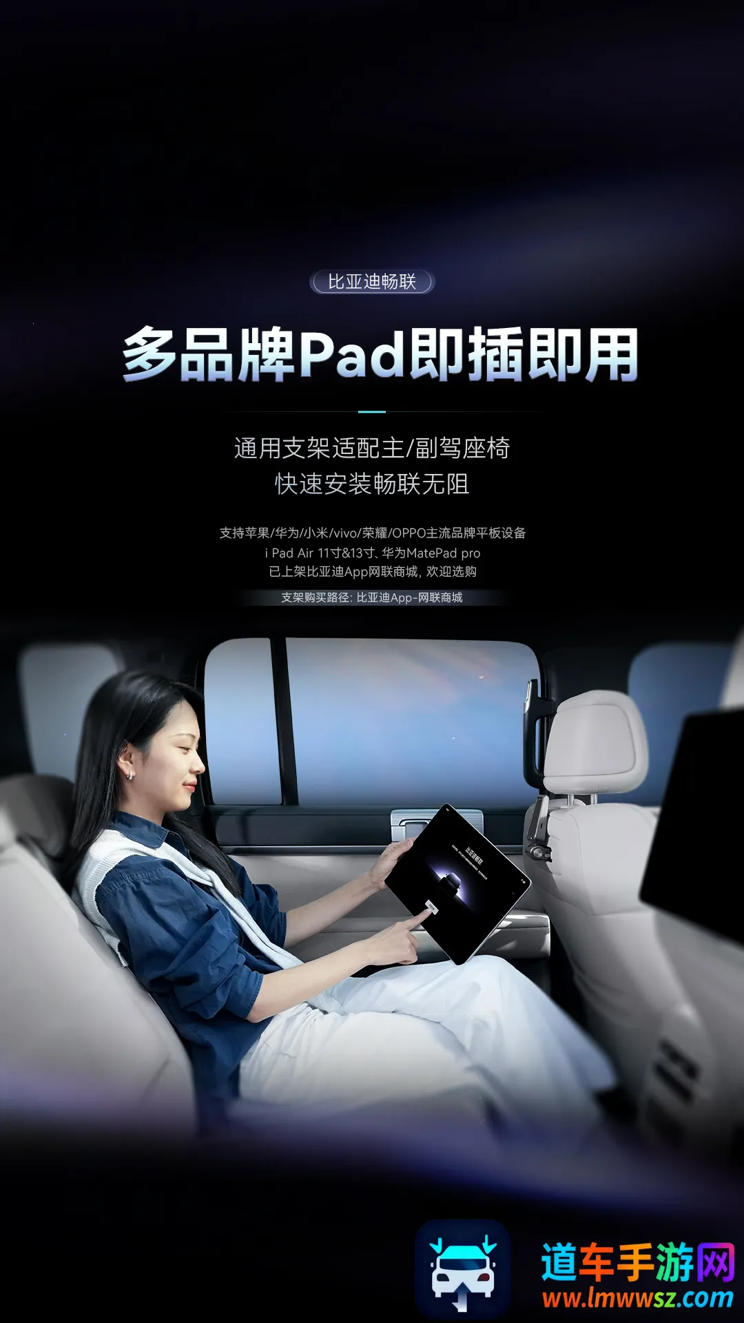 1. 多端协同:支持华为、荣耀、小米、OPPO、vivo等主流品牌平板设备,无需更换硬件,即可实现一车多屏的个性化出行体验,让后排乘客尽享控车自由。